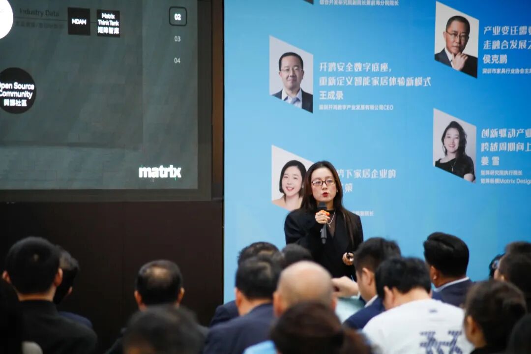 最后,姜雪院长诠释了矩阵纵横行业革新模型,通过 AIGC技术的创新应用,不仅在设计领域实现了突破,更为家居产业的发展提供了新的方向。矩阵纵横相信,通过产业融合和技术创新,一定能够跨越周期,向上而生,共同开启家居产业的新篇章。